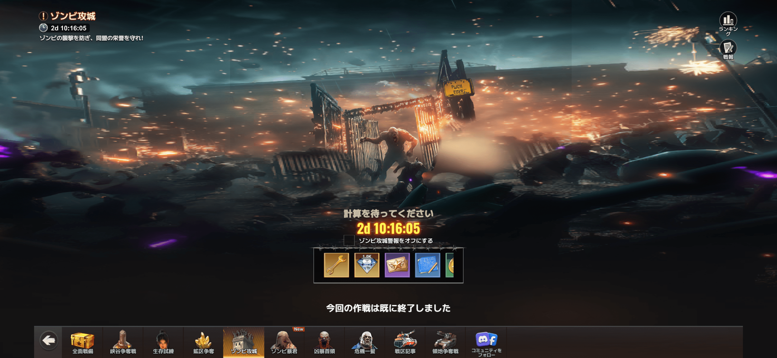 ゾンビ攻城は、同盟メンバーのHQにゾンビが襲撃してくる防衛イベントです