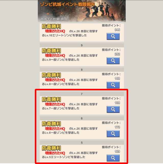 ゾンビ攻城では同じウェーブのゾンビがすべてのHQに出現し、2回敗北するとそのHQへの襲撃は終了します